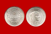 Invece la parte opposta delle 1000 lire roma capitale 1970 è disegnata da Laura Cretara e riproduce il progetto di pavimentazione della “Piazza del Campidoglio di Roma (Opera del Michelangelo Buonarroti) Con la scritta “ROMA CAPITALE – 1000 – LIRE”.